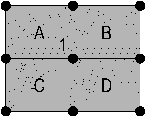 Explanation of Contour Averaging. Consider the four shell elements labeled A, B, C and D shown in the sketch below. These four shell elements all have a common point, labeled 1, in the sketch.
